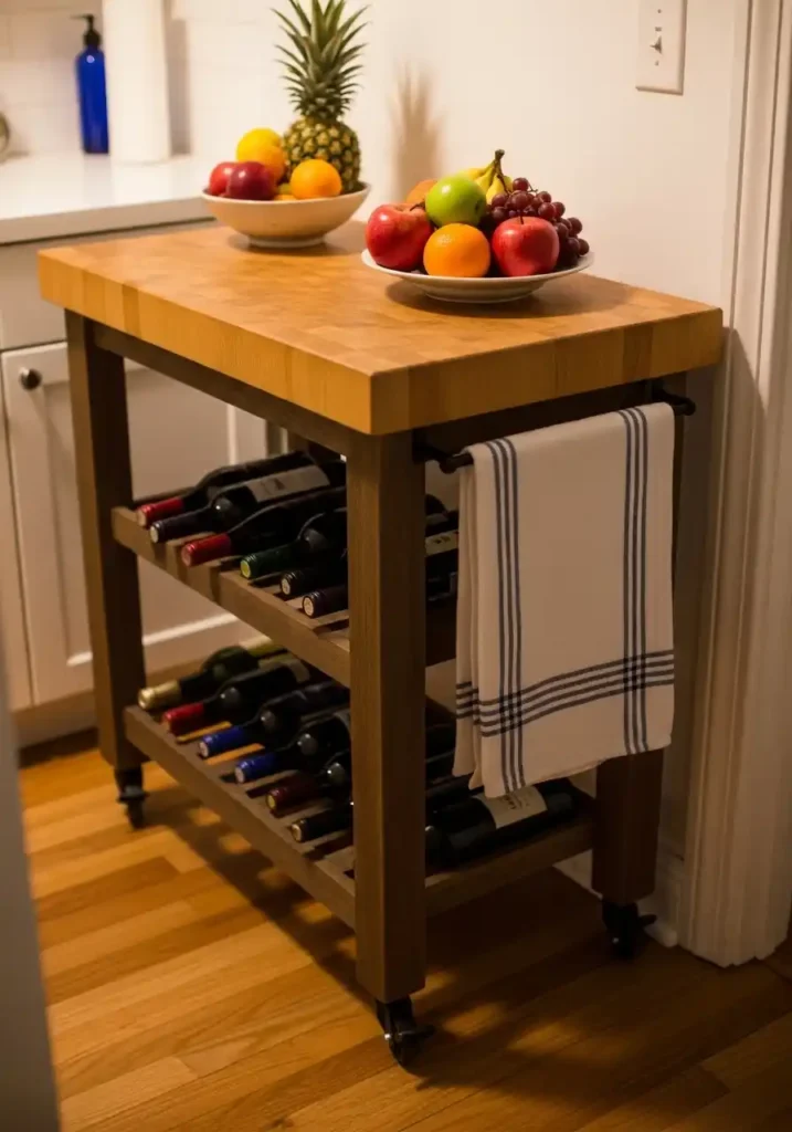 Counter space in an apartment kitchen is basically currency — and a rolling kitchen cart is like getting a bonus paycheck. These moveable islands give you extra prep space exactly when and where you need it. Hosting a dinner party? Roll it front and center. Normal Tuesday night? Tuck it against the wall to open up the floor. It’s flexibility that fixed cabinetry simply can’t offer, and it works in literally any kitchen layout.