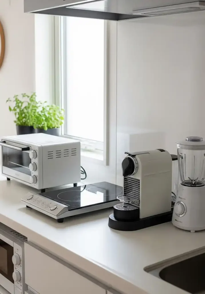 Invest in a slim two-slice toaster instead of four, a compact espresso machine instead of a full drip system, a mini food processor instead of a full-size one. The market for compact, high-quality appliances is absolutely booming — brands like Fellow, Breville, and Cuisinart all make stunning small-footprint versions of everything you love. Store what you don’t use daily in lower cabinets or up high. Your countertop should be a working space with breathing room, not an appliance showroom.