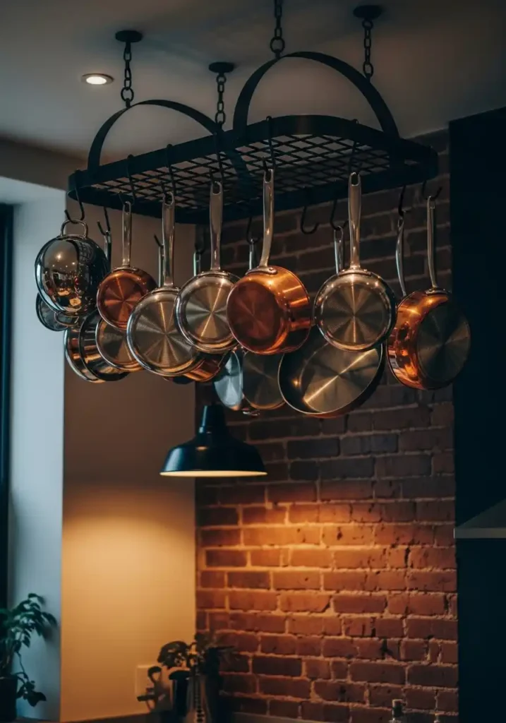 If your kitchen has enough ceiling height, a hanging pot rack is one of the most dramatic, chef-inspired storage upgrades you can make. It frees up an entire cabinet or two, keeps your cookware at arm’s reach while you’re cooking, and adds enormous visual character to your kitchen. A copper or matte black pot rack against white walls? That’s the kind of kitchen people photograph and pin obsessively. It turns practical storage into actual décor.