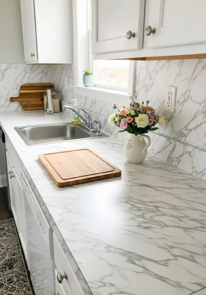Ugly laminate countertops are practically a rite of passage in apartment living. The finish is dated, the color is wrong, and staring at them every morning is quietly demoralizing — but you can’t replace them. Contact paper to the rescue. Modern adhesive contact paper comes in stunningly realistic marble, concrete, butcher block, and granite patterns that, when properly applied, genuinely fool the eye. A full countertop transformation can cost as little as $30 and take a single Saturday afternoon.