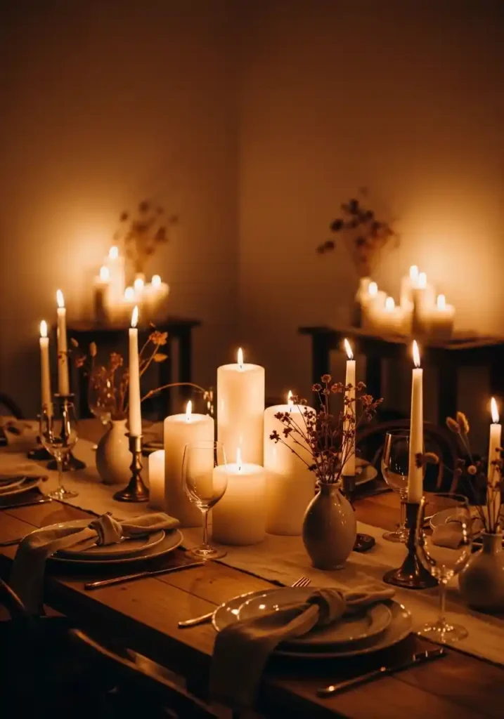 11. Candlelit Dining with Pillar Candles and Tapered Holders