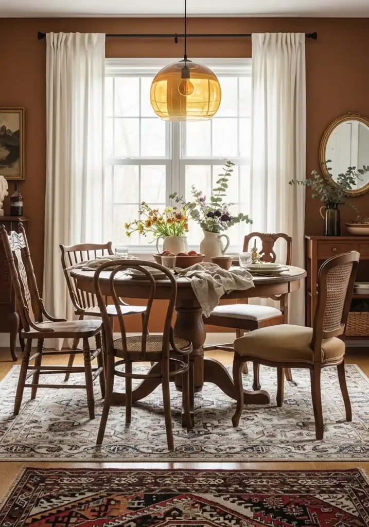 3. Mismatched Vintage Chairs Around a Central Table