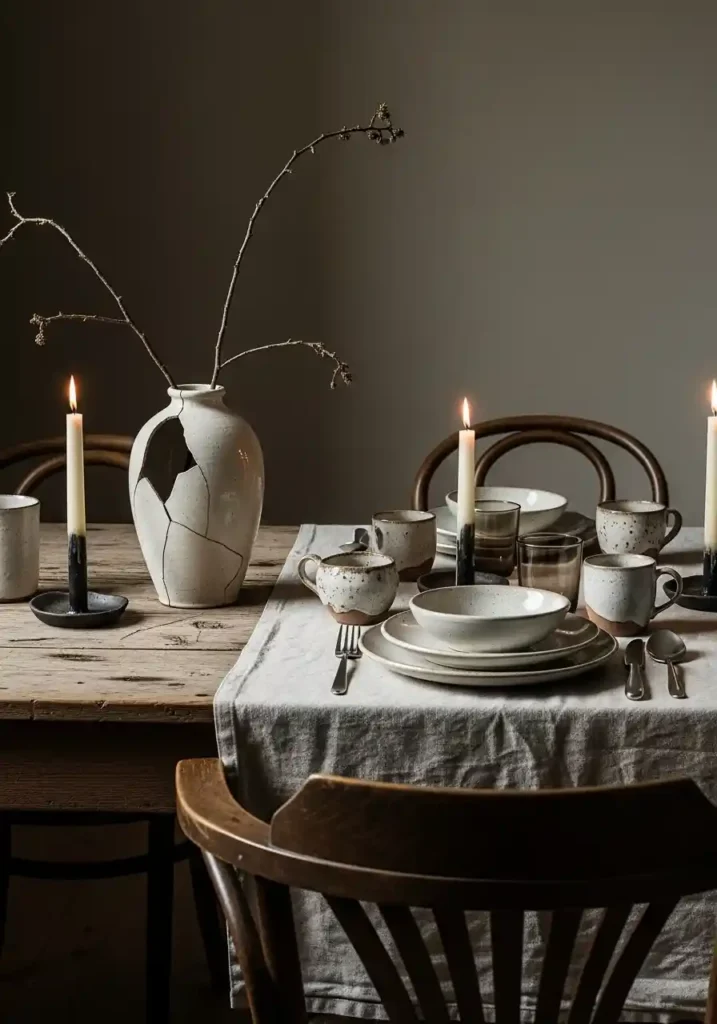 15. Wabi-Sabi Boho Dining with Imperfect Beauty
