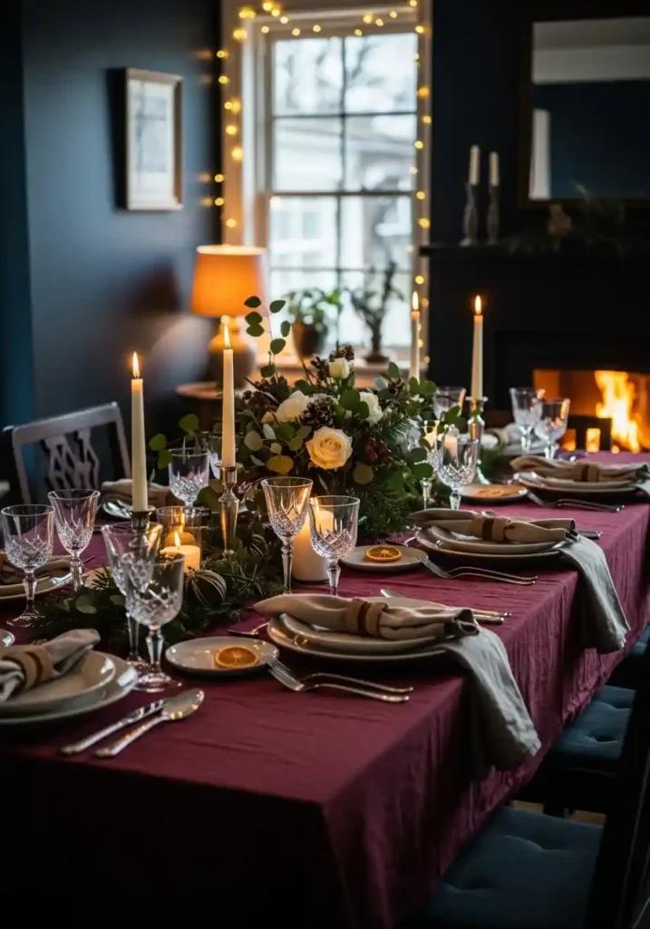 23. The Cozy Winter Dining Room: Warm Lights, Deep Colors, and Seasonal Magic