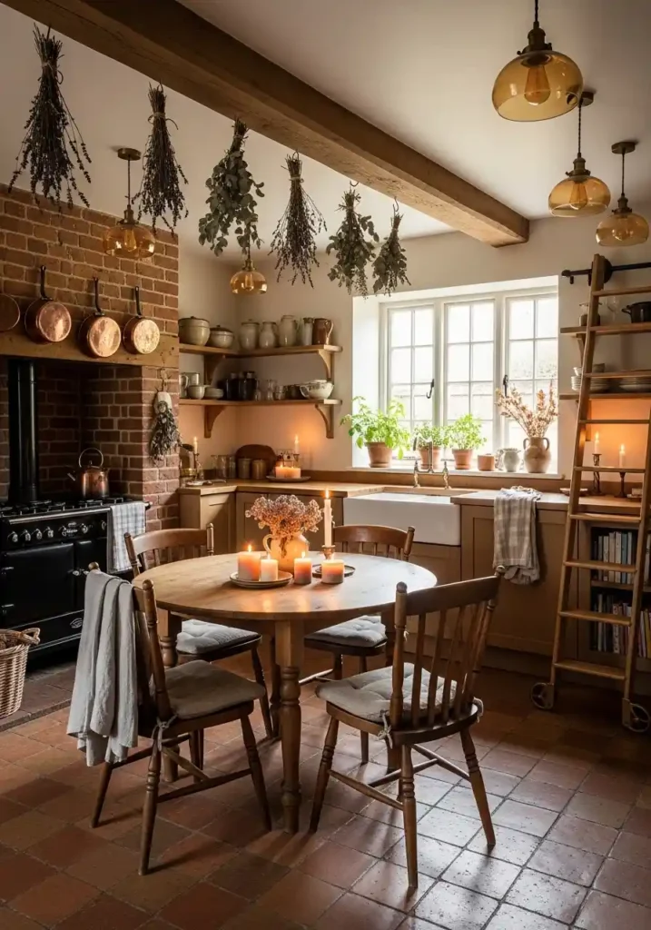 Candlelight in a cozy kitchen is the most primal and the most completely atmospheric lighting available — because candlelight provides not just warm illumination but a quality of living, constantly moving, organically flickering light that no electric source can replicate with the same quality of genuine warmth and genuine visual magic, and a kitchen lit by multiple sources of real candlelight at the end of the day creates an atmosphere of such complete, concentrated, genuinely extraordinary domestic beauty that cooking within it and gathering around the island within it feels genuinely special rather than simply habitual. Candles transform the kitchen from a functional room into a sacred domestic space.
