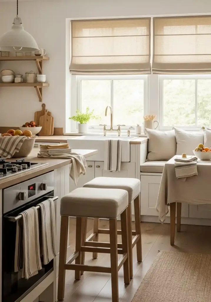 17. The Cozy Kitchen with Linen Textiles for Soft Natural Warmth
