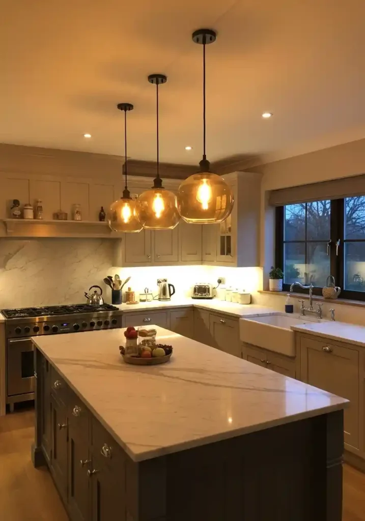 2. The Cozy Kitchen with Warm Amber Pendant Lights