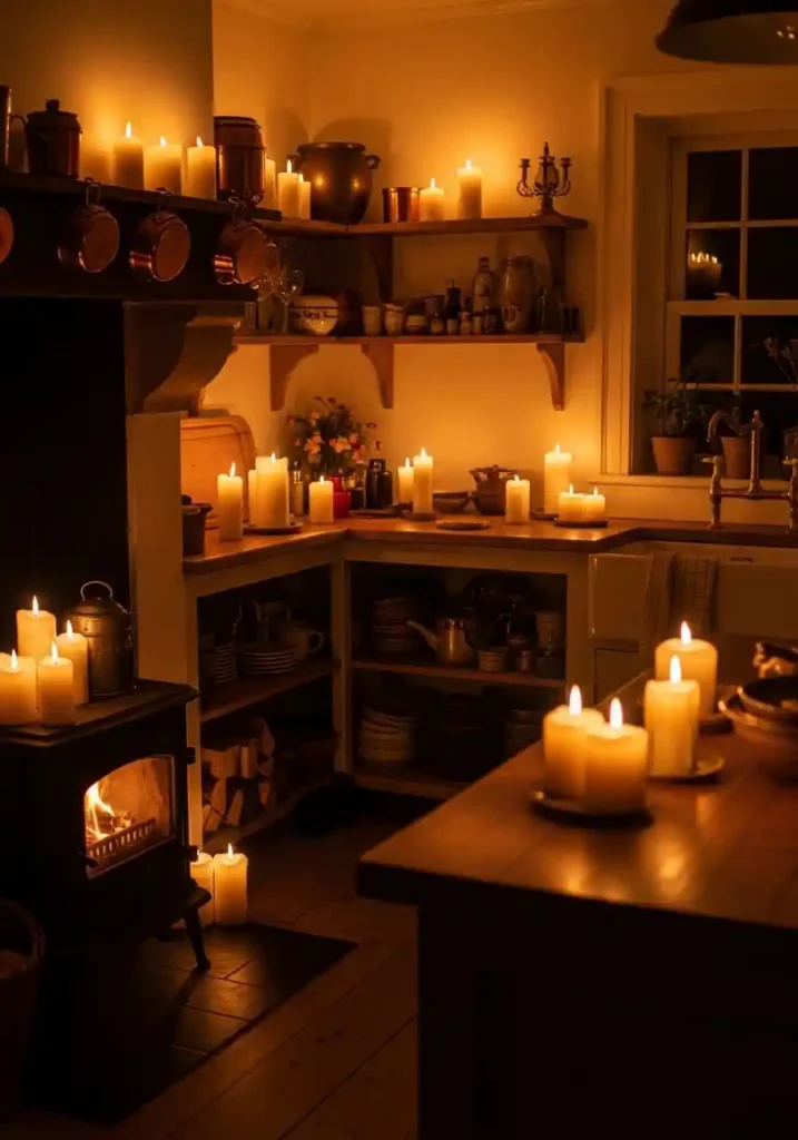 9. The Cozy Kitchen with Candlelight as Atmospheric Lighting