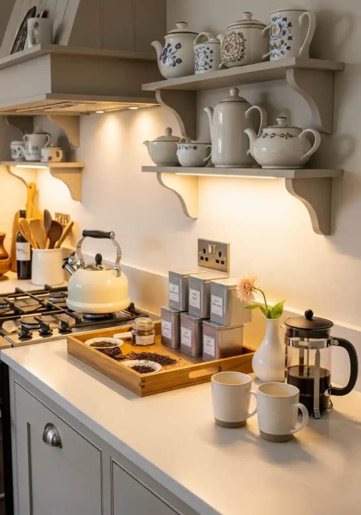21. The Cozy Kitchen with a Dedicated Tea and Coffee Ritual Corner