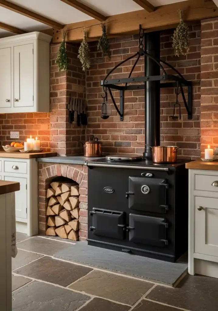 1. The Cozy Kitchen with a Wood-Burning Stove for Ultimate Warmth