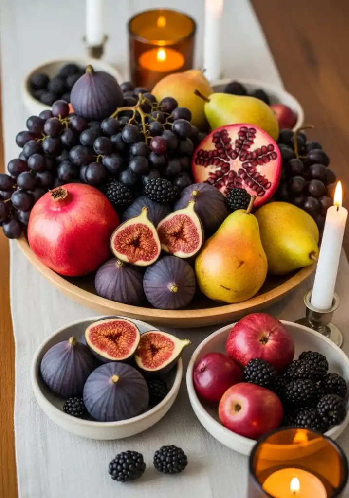 The most spectacular fresh fruit displays for the dining table are those that embrace genuine seasonal variety and arrange the fruits with the same deliberate eye for color, scale, and textural contrast that a great painter brings to still life composition — the most beautiful genre of painting that has always celebrated the extraordinary visual richness of gathered seasonal abundance with complete, passionate artistic devotion! Autumn figs, grapes, and pomegranates create the most jewel-toned and most sumptuously beautiful seasonal fruit display. Summer peaches, plums, and berries create the most vibrantly colorful and most fragrantly beautiful table. Winter citrus fruits in warm yellow and orange create the most warmly cheerful and most gorgeously fragrant cold-weather display.