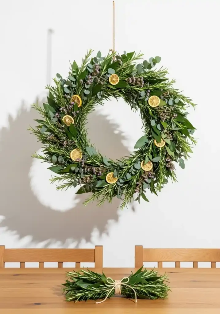 20. The Herb Wreath Dining Decor: Fragrant Natural Beauty That Lasts for Weeks