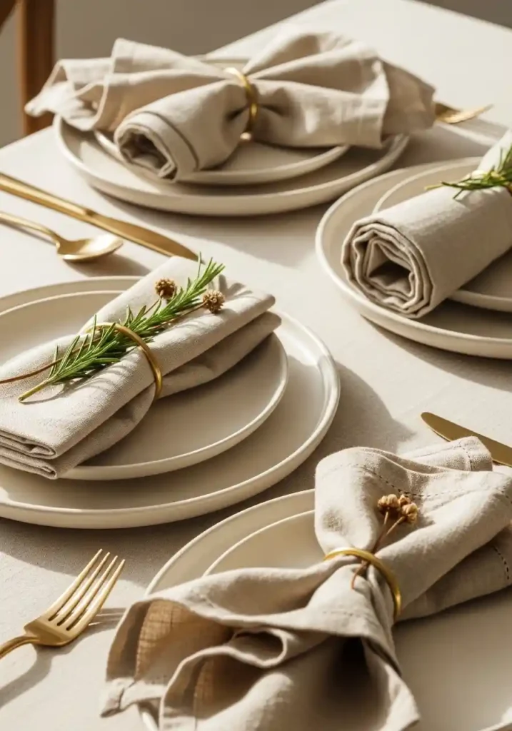 The most beautiful napkin styling for everyday elevated dining combines genuinely high-quality linen napkins with the simplest and most natural styling approaches — a casual roll secured with a simple brass ring communicates relaxed elegance of genuine quality. A loose gather secured with a sprig of fresh rosemary, a dried flower stem, or a small herb cutting adds a botanical warmth of extraordinary personal thoughtfulness. A simple architectural fold draped over the plate edge creates clean contemporary elegance. Whatever styling approach you choose, the quality of the linen itself matters enormously — thick, substantial linen napkins with beautiful natural texture create a sensory warmth at the table that paper and thin cotton alternatives simply cannot provide.