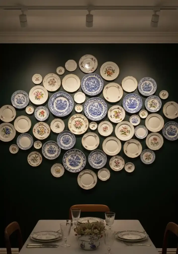 A plate wall display in the dining room is the most charmingly appropriate and most genuinely thematic decorative installation available for a dining space — because using beautiful decorative plates as wall art in the room where plates are used daily for their intended purpose creates the most perfectly contextual and most warmly appropriate decorative relationship between object and environment imaginable! A beautifully composed plate wall communicates genuine appreciation for the art of tableware design, the history of ceramic traditions across many cultures, and the visual beauty of objects that are both functional and genuinely decorative.