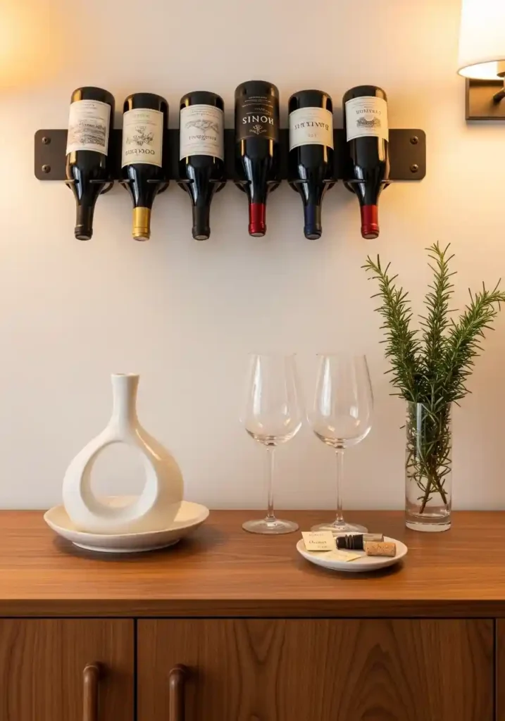A beautifully styled wine display in the dining room creates the most generously hospitable and most genuinely celebratory atmosphere available for everyday dining — because the visible presence of beautiful wine bottles, elegant glasses, and a thoughtfully arranged carafe communicates immediately and warmly that this dining room is ready for the genuine pleasure of shared meals, that good wine is considered an important part of the dining experience rather than an occasional afterthought, and that the host has given serious and enthusiastic thought to what will be enjoyed at this table tonight!