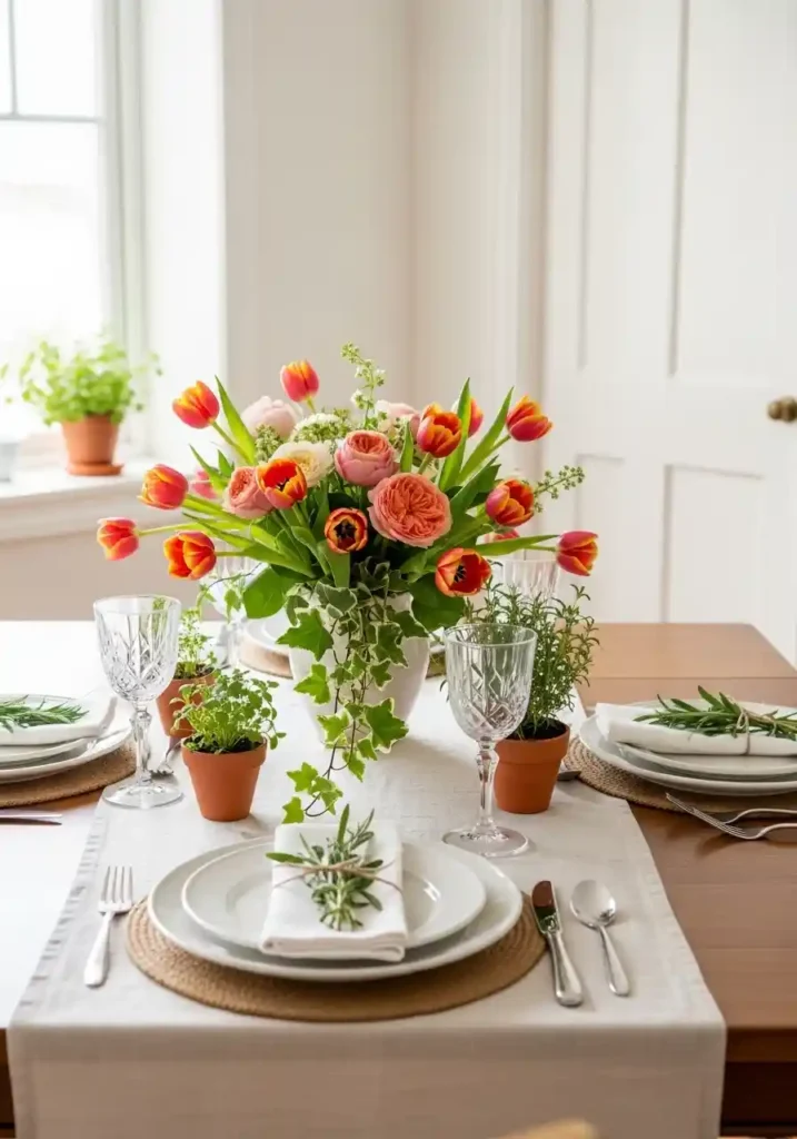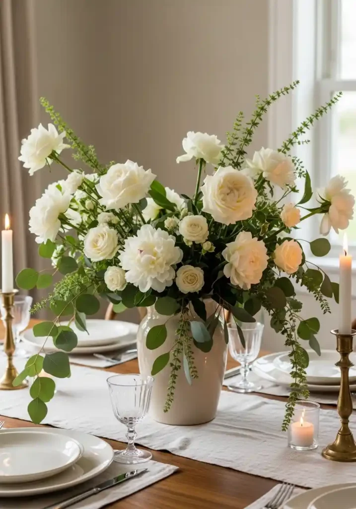 A generous botanical centerpiece at the dining table is the single most immediately impactful and most completely alive decor element available — because fresh flowers and botanical stems create a quality of living, breathing natural beauty and genuine organic fragrance that no manufactured decorative object can replicate regardless of its artistic quality or its material excellence! The presence of genuinely abundant fresh flowers at the dining table communicates immediately and warmly that someone cared enough about this specific meal and these specific people to bring the most beautiful living things they could find into the center of the shared experience.