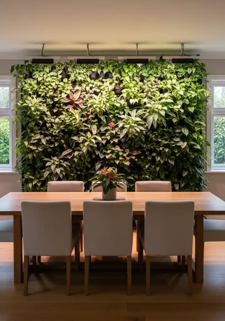17. The Plant Wall: Living Green That Transforms the Dining Room Atmosphere