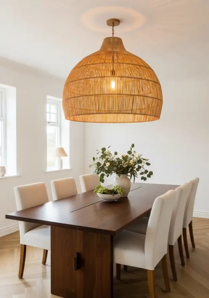 The scale relationship between the pendant and the dining table beneath it is the single most important proportional decision in dining room design — and it requires genuine boldness rather than timid, playing-it-safe conservatism that consistently produces underwhelming results! The pendant diameter should be approximately two-thirds of the table width for the most beautifully balanced visual relationship. Hang between 70-80cm above the table surface for the most intimate and most atmospherically beautiful dining illumination. An oversized rattan, aged brass, or dramatic black iron pendant creates an instant focal point of genuine visual power that transforms the entire room with one confident decision.