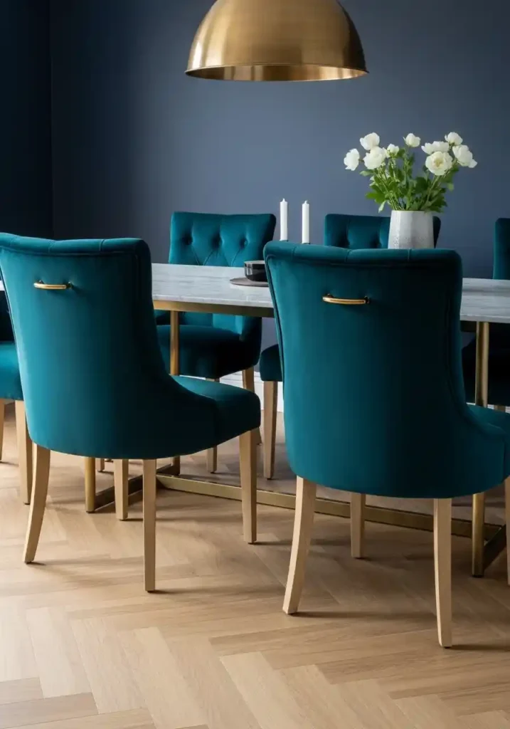 The velvet upholstered dining chair is the most Pinterest-popular and most visually spectacular option available — deep jewel-toned velvet in teal, emerald, burgundy, or navy creating chairs of such extraordinary material richness and genuine visual glamour that they elevate the entire dining room’s aesthetic quality simply by being present within the space! Button-tufting on the chair back adds classical craftsmanship detail of genuine beauty and historical resonance. Brass or gold leg details add warm metallic sophistication at the furniture’s most detailed level. High-quality performance velvet ensures the extraordinary material beauty is maintained through years of intensive daily use.