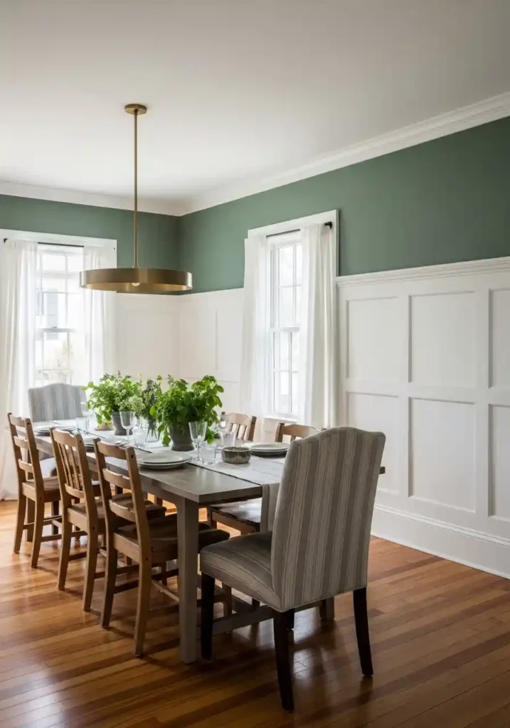 The most beautiful wainscoting and color combinations for stylish dining rooms are those that use the dado rail line as a deliberate design transition — white beadboard below with sage green above creates the most warmly botanical and most completely timeless result! White raised panel below with deep navy above creates a classic, deeply elegant and broadly admired combination. White shiplap below with rich forest green above creates a beautifully modern-farmhouse character. Whatever color you choose above the wainscoting, ensure the paint quality is genuinely excellent — the visual contrast between the paneled lower wall and the painted upper wall means any paint application imperfections are immediately and clearly visible.