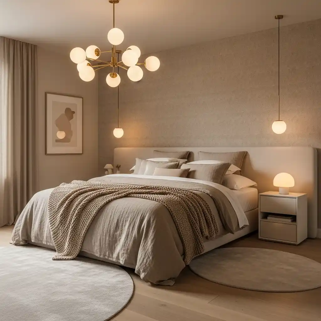 Lighting plays a crucial role in creating a sophisticated bedroom atmosphere. Soft, layered lighting adds warmth and depth, transforming the space into a relaxing retreat. Table lamps, wall sconces, and gentle overhead lighting work together for a timeless look.