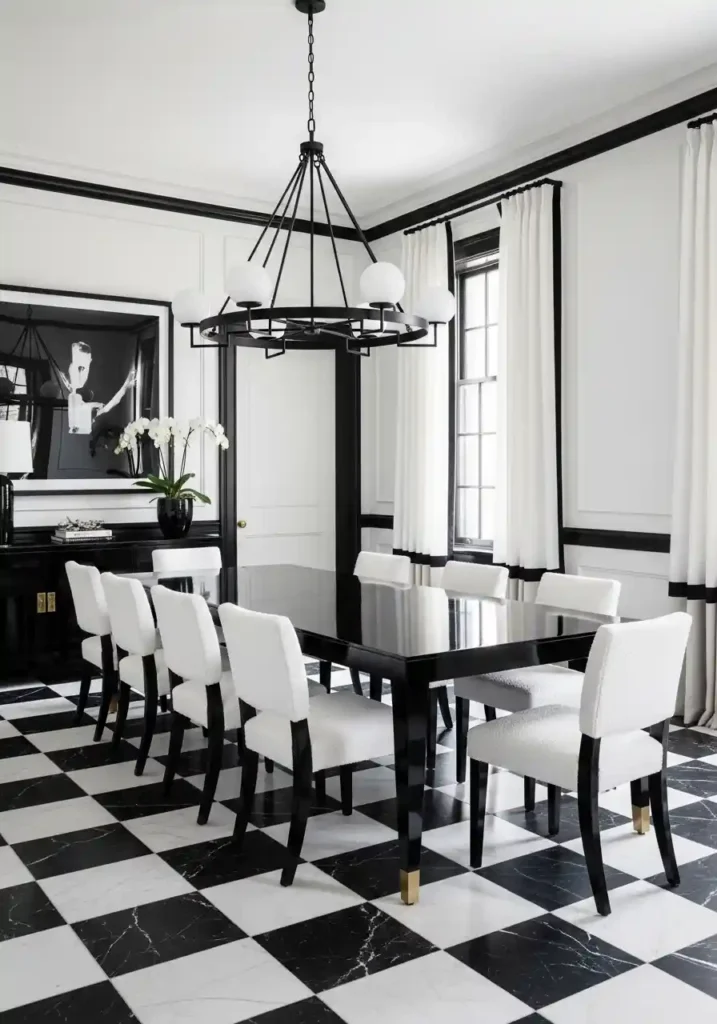 8. The Classic Black and White Dining Room with Graphic Elegance