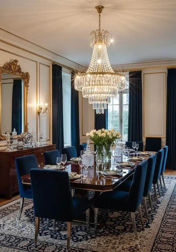 The perfectly elegant dining room — the one that makes every dinner party feel genuinely special and genuinely memorable; that makes every person who enters it feel immediately, unmistakably that they are in a room of genuine sophistication and genuine beauty; that creates the specific atmosphere of occasion and importance that transforms an ordinary meal into a genuinely ceremonial, genuinely celebrated act of domestic life; and that looks more beautiful and more completely resolved with every candle lit and every glass filled — is the accumulated, harmonious, magnificently resolved result of multiple sophisticated design decisions working together in a state of complete, mutual, aesthetic reinforcement. The crystal chandelier and the velvet chairs and the Persian rug and the gilded mirror each make every other element more magnificent by its presence.