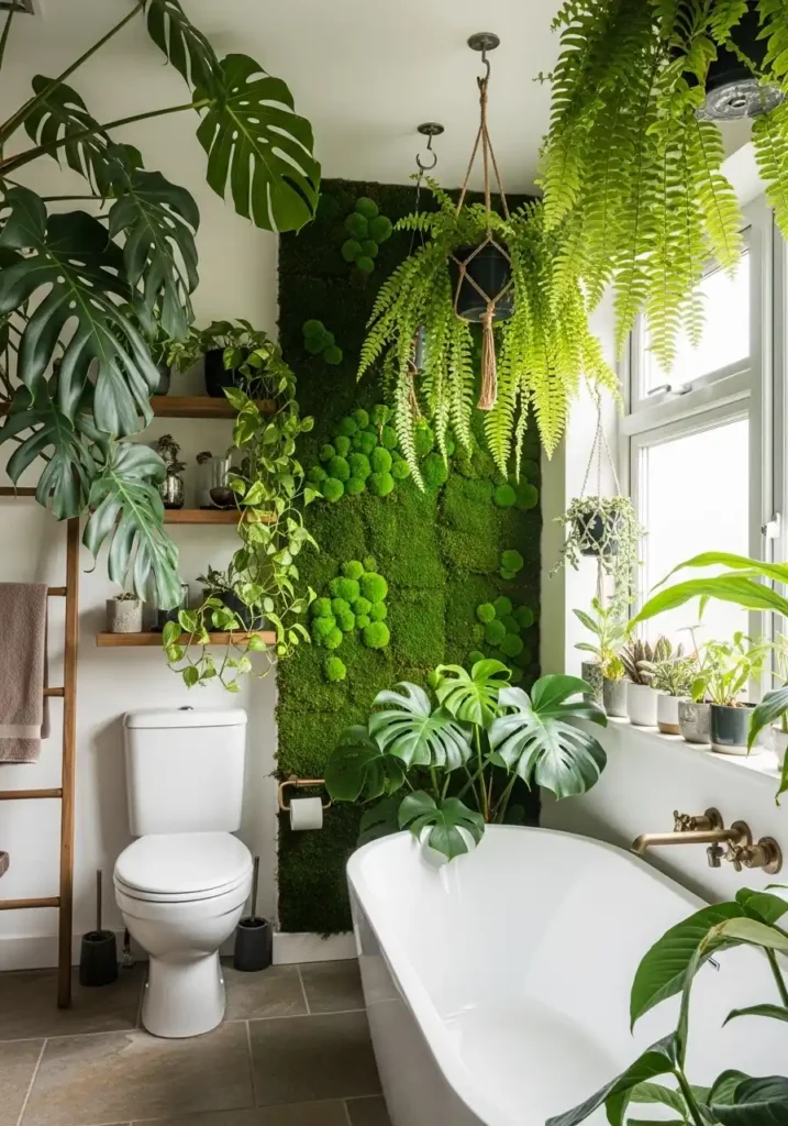 17. Biophilic Green Bathroom: When the Bathroom Becomes a Living Garden