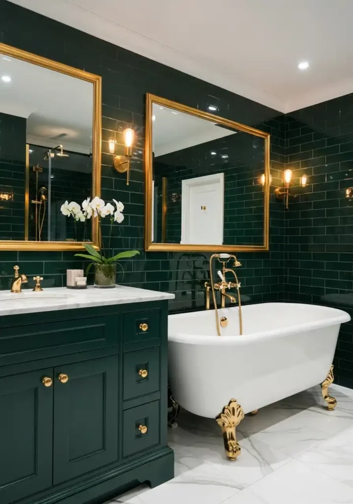 8. Dark Green Bathroom With Gold: The Most Opulent Combination Imaginable