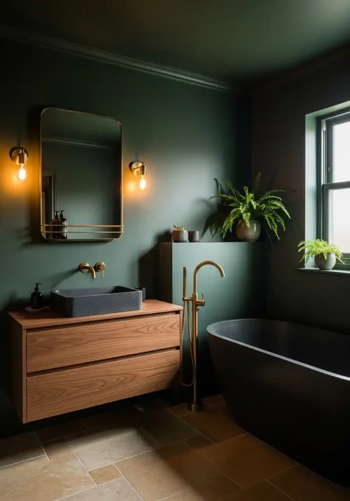 3. Forest Green Bathroom: Dark, Moody, and Deeply Atmospheric