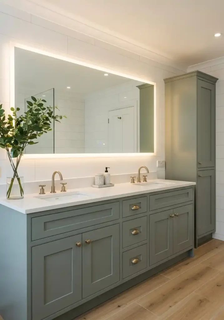 The beauty of choosing a green vanity as a statement piece within a larger neutral bathroom scheme is the creative freedom it gives you to choose exactly the right shade of green for your personal style without committing to the full-room intensity that all-green bathrooms require. A sage green vanity with white countertop and walls looks fresh, organic, and gently botanical. A forest green vanity with marble countertop and brass hardware looks sophisticated and genuinely luxurious. A mint green vanity with chrome fixtures and white tiles looks cheerful, vintage-inspired, and completely charming. Whatever green you choose for your vanity, pair it with the most beautiful hardware you can afford — exceptional hardware transforms a good vanity into a completely extraordinary one.