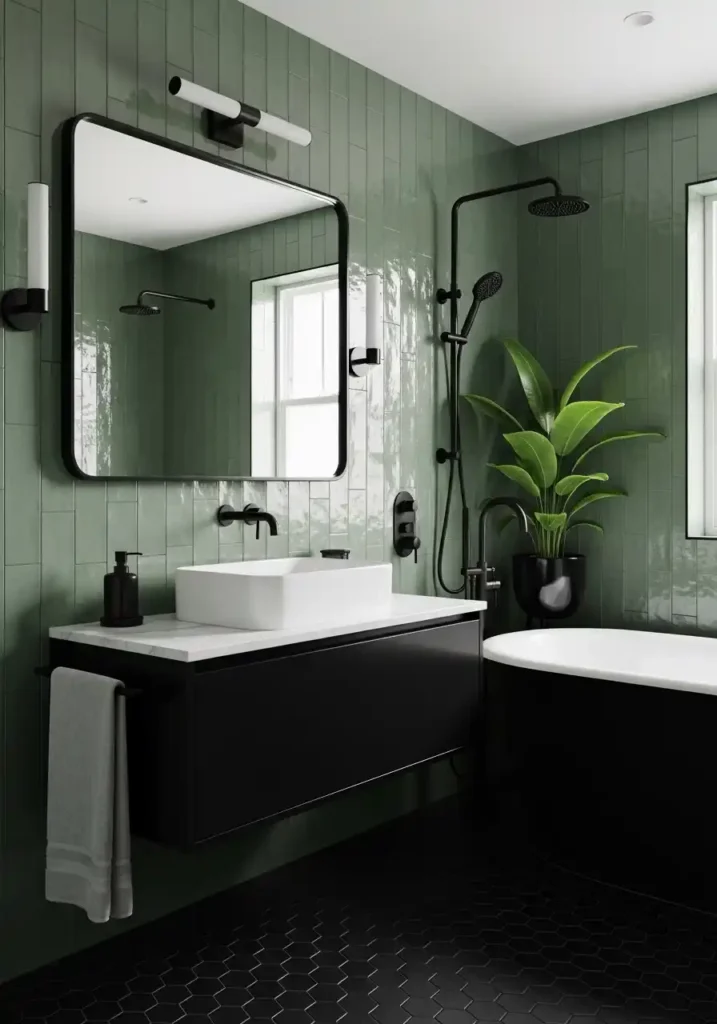 12. Green Bathroom With Black Accents: Modern Sophistication in Perfect Harmony