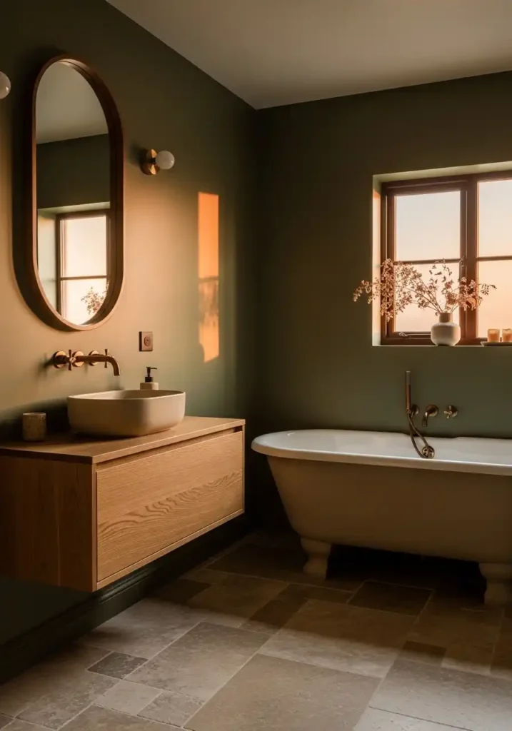 6. Olive Green Bathroom: Earthy, Complex, and Genuinely Sophisticated