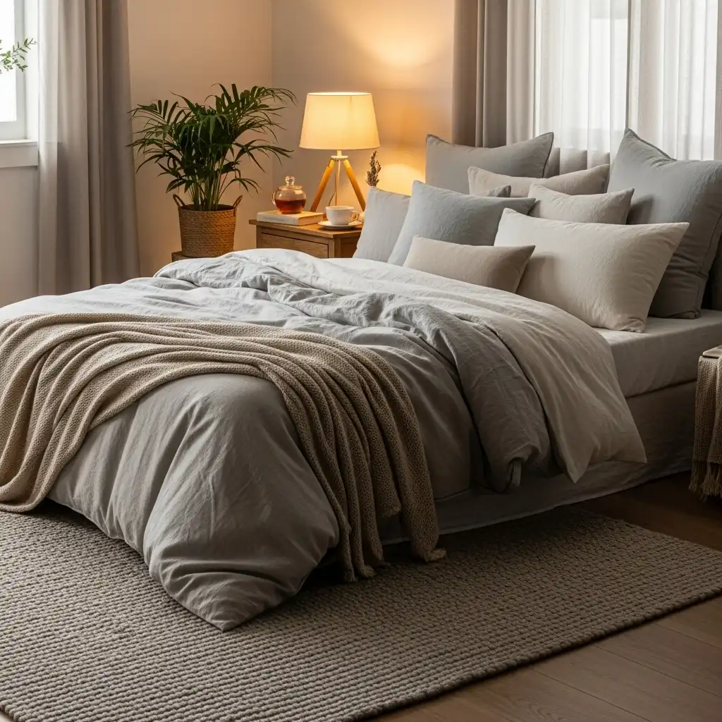 Layer textures for depth. Keep decor minimal and calming. Neutral luxury bedrooms feel timeless and cozy.