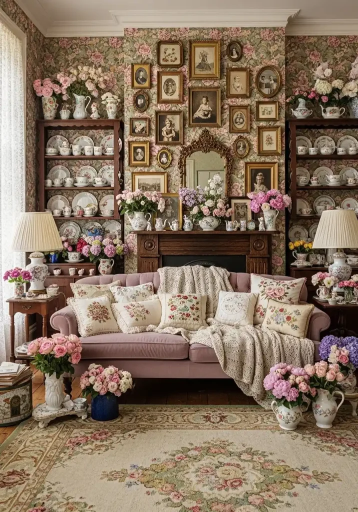 23. Grandmother-Chic Living Room — Maximalist Vintage Done Right
