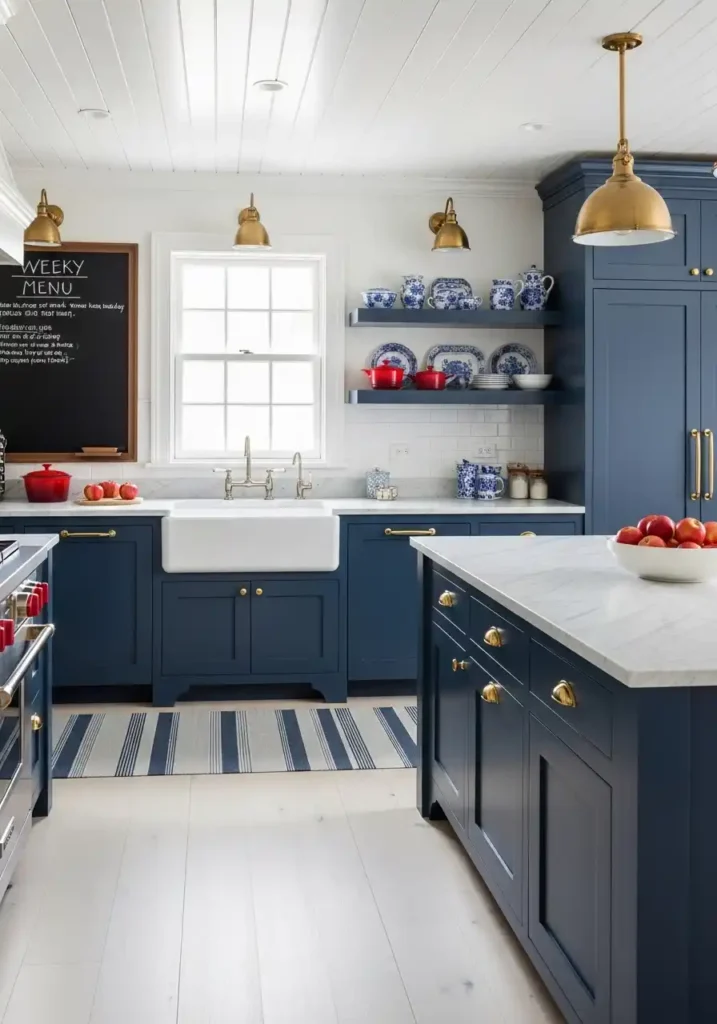 The New England preppy kitchen aesthetic is the design language of confident, classic, genuinely American domestic beauty — the kitchen of the beautiful New England farmhouse or the weekend beach cottage where everything is well-made, properly proportioned, and decorated with the specific combination of blue and white, brass and oak, shiplap and marble that has defined the American Northeast’s most beautiful domestic interiors for generations. The preppy kitchen is not trying to be fashionable or forward-thinking — it is trying to be excellent, and it succeeds so completely that it never needs to be updated, refreshed, or reconsidered because it was never following a trend in the first place.