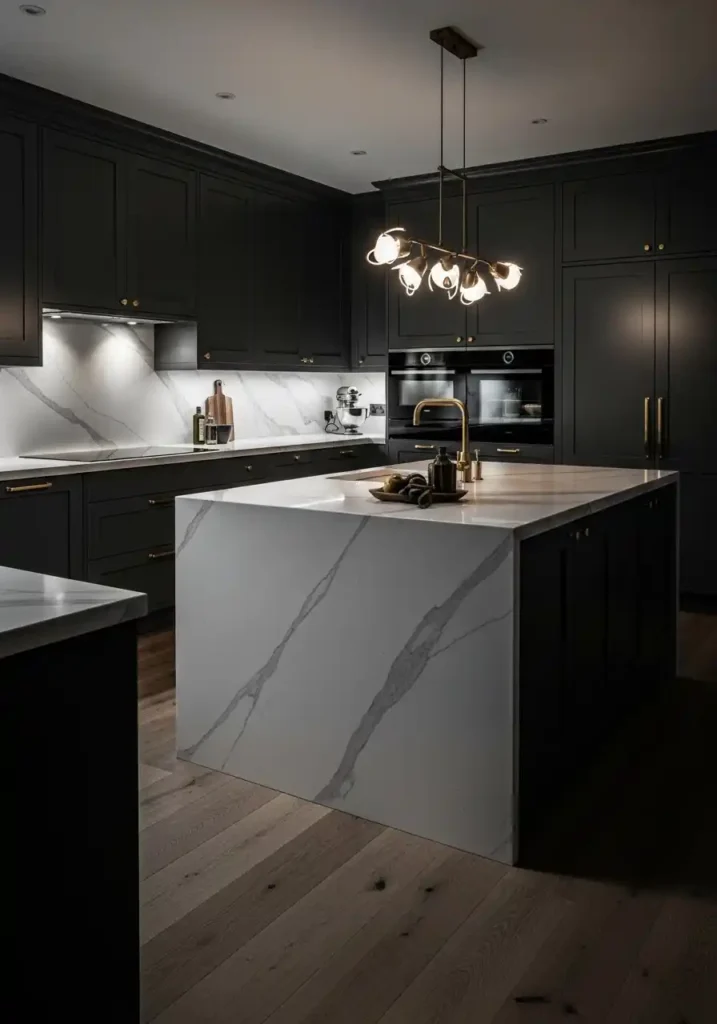 The key to making dark kitchen cabinets work brilliantly is all about balance and strategic contrast. Pair them with light countertops — think white marble or pale quartz — and warm metallic hardware in gold or unlacquered brass to keep the space feeling rich rather than gloomy. Maximize every source of natural light and add layered artificial lighting through under-cabinet strips and statement pendant lights above the island. The result is a kitchen that feels like it was designed by someone who truly knows what they are doing — bold, moody, and completely unforgettable. Dark cabinets are the ultimate power move in modern kitchen design.
