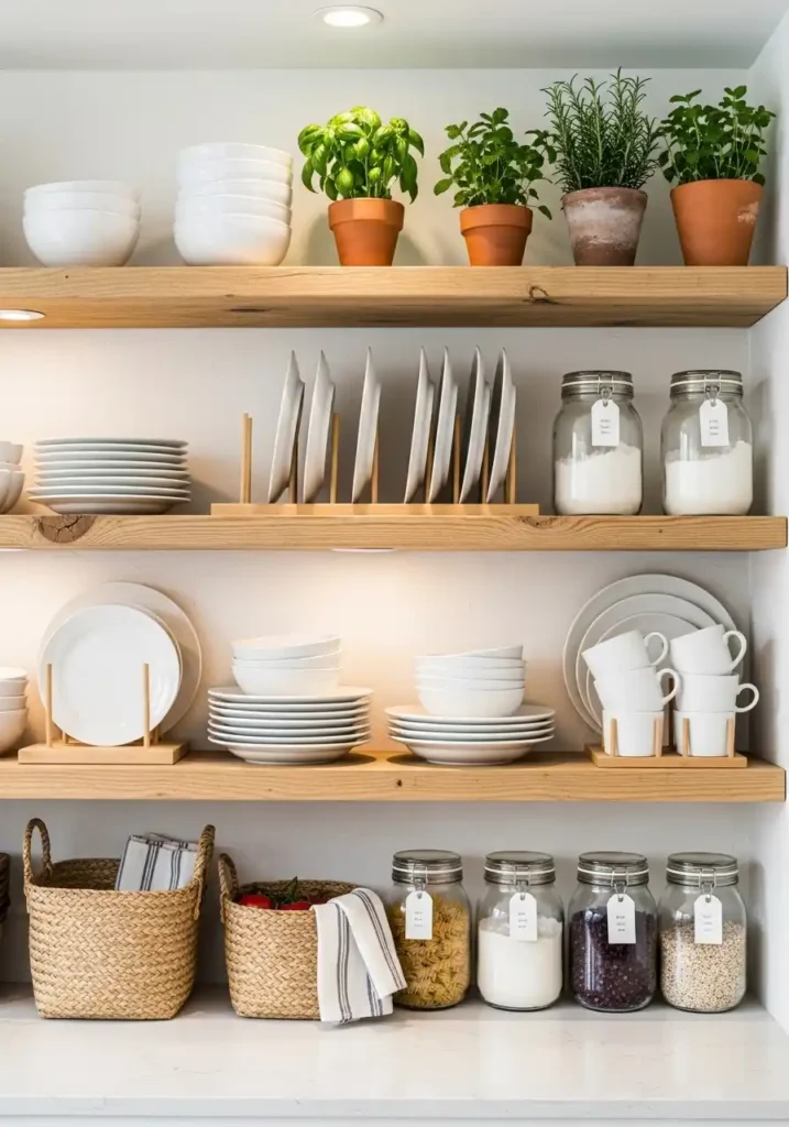 Open shelving cabinets are the secret weapon behind every beautifully styled kitchen you have ever double-tapped on Pinterest! By simply removing cabinet doors and letting your dishes, glassware, and kitchen essentials breathe freely, you create a space that feels bigger, brighter, and so much more personal. It is the perfect opportunity to display your favorite ceramic bowls, vintage finds, and trailing pothos plants in a way that makes your kitchen feel genuinely curated — like you ripped a page directly out of a design magazine and made it your real life.