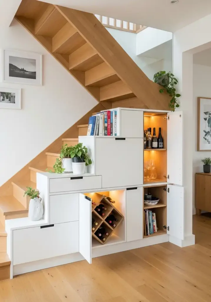 The key to making under-staircase kitchen cabinets work brilliantly is working with a skilled carpenter who understands how to create custom-fitted solutions for irregular spaces. The varying heights created by the stair angle are actually an asset — tall sections work beautifully for wine storage, broom cupboards, or appliance garages, while lower sections house drawers for linens, utensils, or pantry overflow. Add interior lighting and beautiful hardware to make the finished installation look as polished and intentional as everything else in your kitchen. Wasted space is simply a storage opportunity waiting for the right creative solution — and under-staircase cabinets are that solution at its absolute most satisfying and clever best.