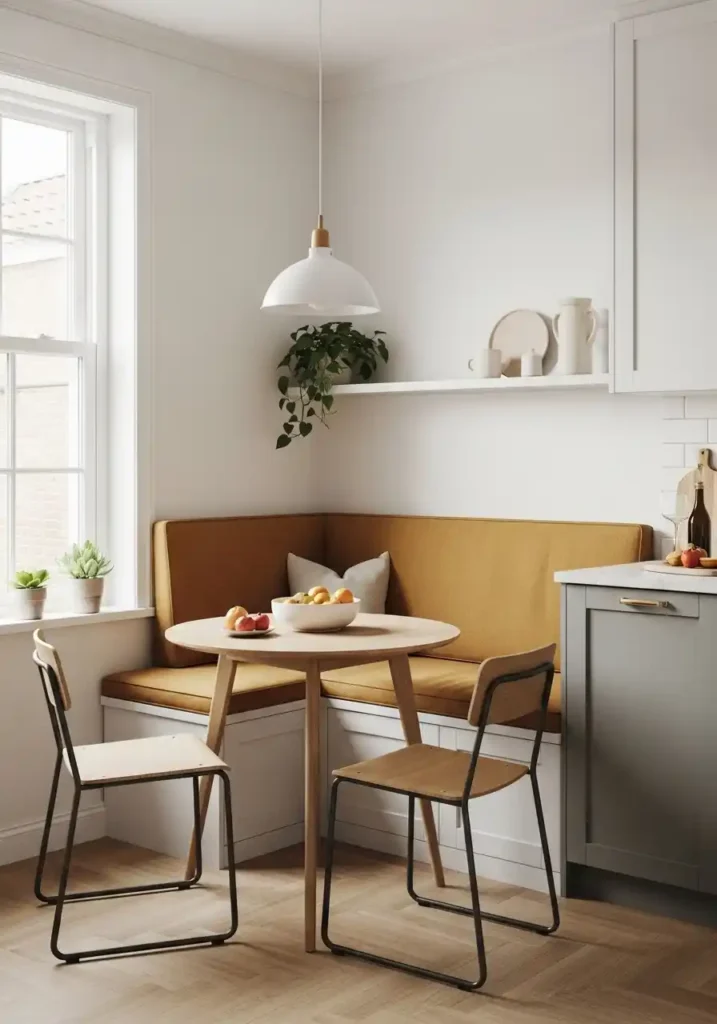14. A Compact Kitchen with a Built-In Breakfast Nook