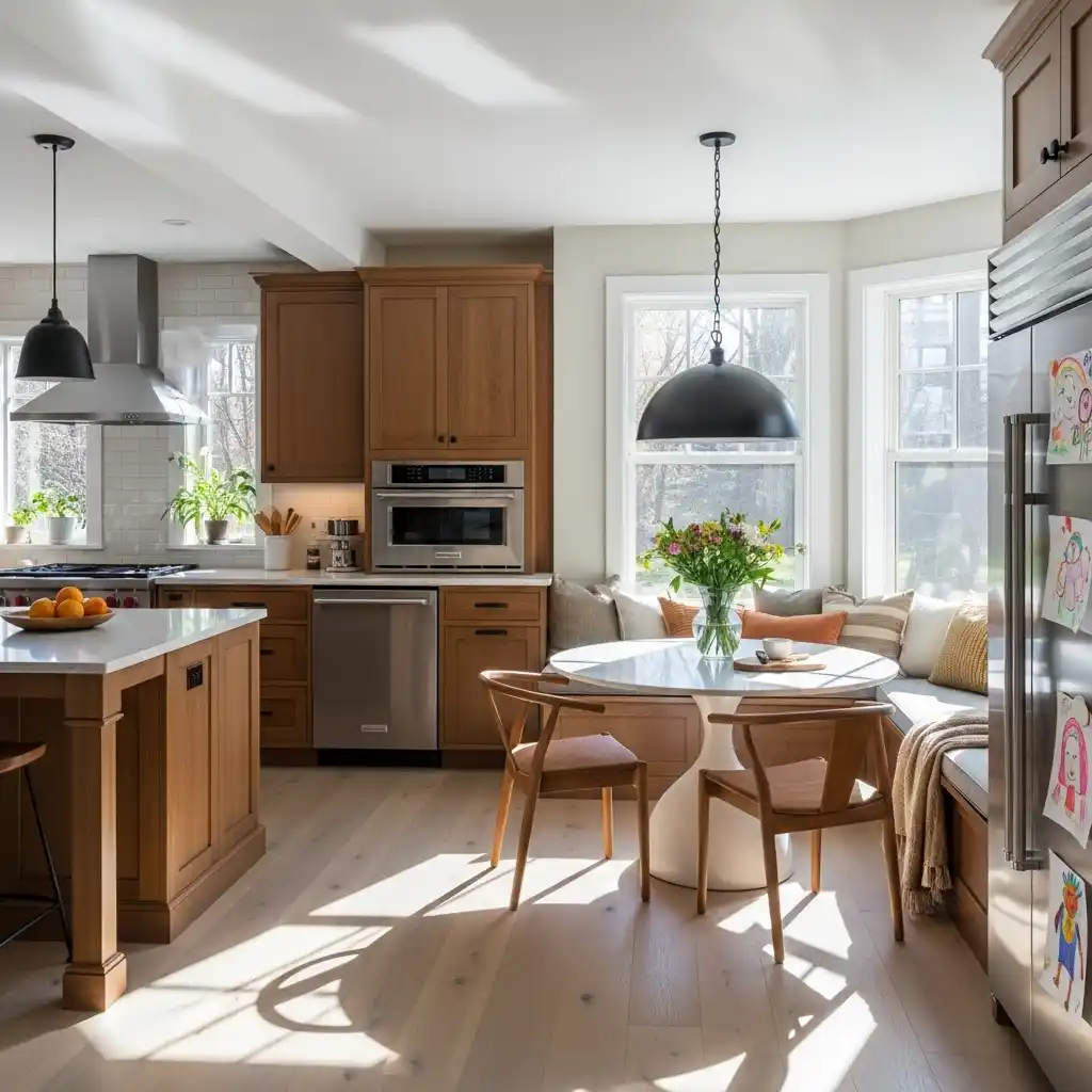 Pinterest users love eat-in kitchens for their warmth and practicality. Built-in benches or compact tables help maintain circulation. When designed thoughtfully, this layout balances comfort and efficiency beautifully.