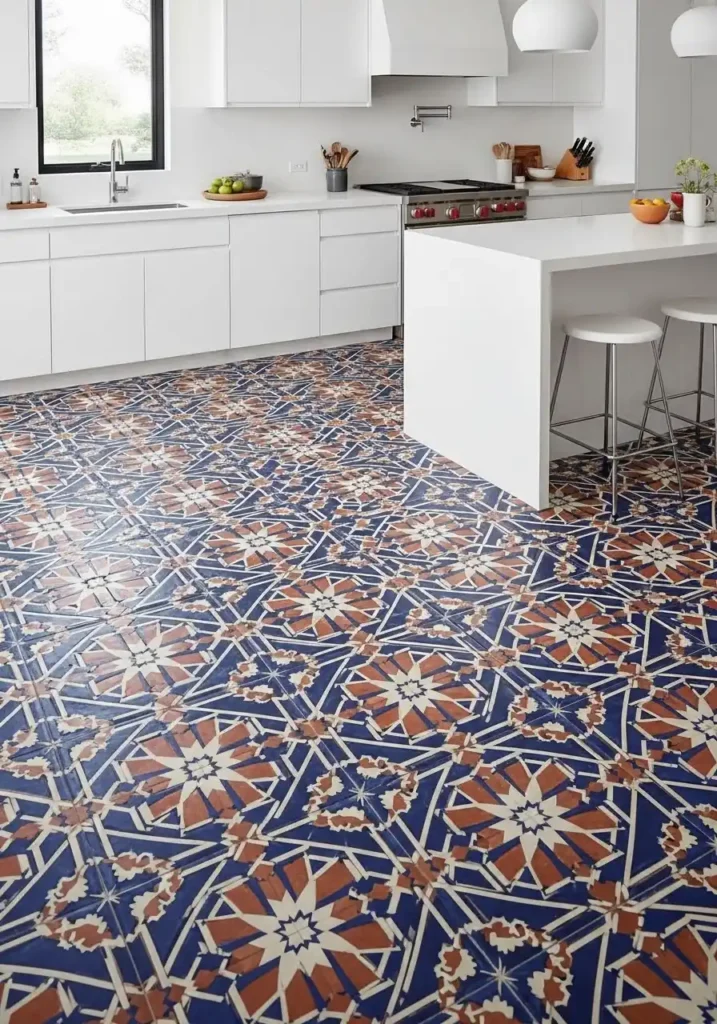 The maximalist pattern tile floor trend is the kitchen design direction that most boldly and most joyfully declares that the kitchen floor deserves the same confident, ambitious, genuinely beautiful design investment as any other surface in the home — challenging the conventional wisdom that kitchen floors should be neutral, understated, and subordinate to the cabinet and countertop choices above them and replacing it with the conviction that a floor of genuine, bold, beautifully patterned material magnificence creates a kitchen foundation of such extraordinary visual energy and such complete design confidence that it elevates the entire cooking space to a level of beauty that a neutral floor could never approach.