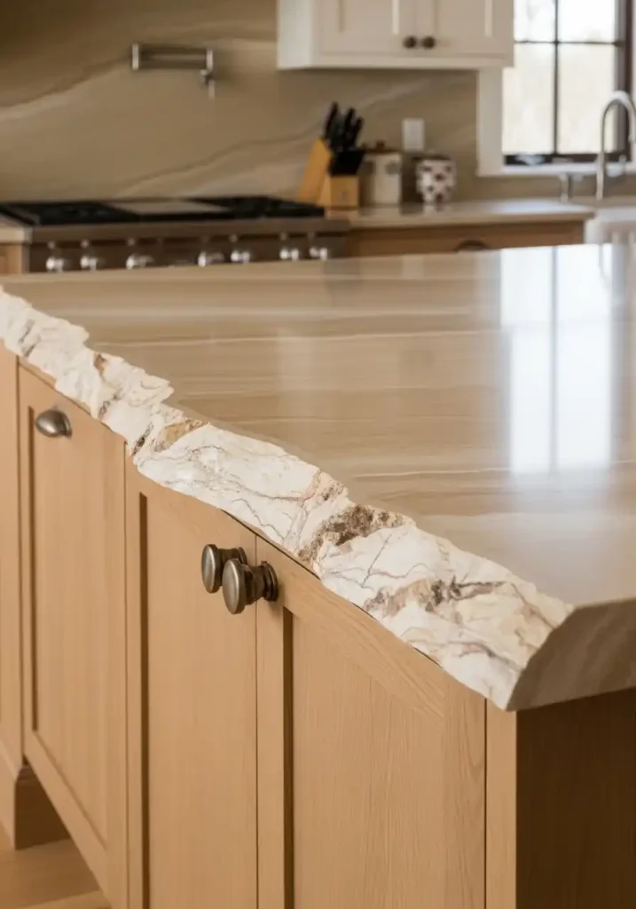 The organic edge countertop trend is the most genuinely, most completely natural countertop specification available in contemporary kitchen design — because a countertop with a live, natural geological edge retained along its front face presents the stone in the form closest to how it exists in the natural world, celebrating the specific geological character of the particular piece of stone rather than standardizing it into the perfectly straight, perfectly uniform edge profile that conventional countertop machining always produces. The organic edge countertop is the most honest and the most authentically natural expression of what stone genuinely, beautifully is.