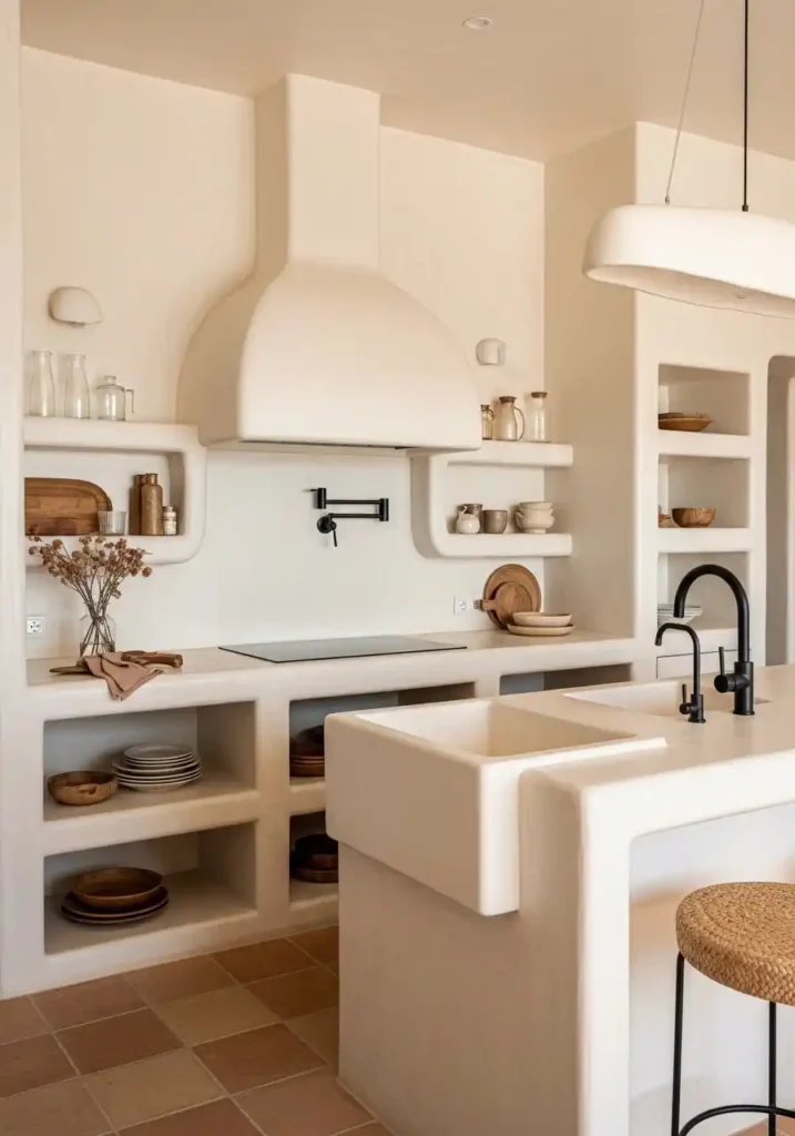 The plaster kitchen trend is the most architecturally ambitious and the most completely organic of all current kitchen design directions — because it applies the ancient building material of hand-troweled plaster to every kitchen surface simultaneously, creating a unified, continuous, seamlessly organic material environment of extraordinary warmth and extraordinary tactile richness that no manufactured surface material can approach with the same depth, the same architectural authenticity, or the same quality of genuinely handmade material presence. A kitchen where the walls, the hood, the island, and even the sink surround are all in the same continuous smooth plaster creates a space of genuinely, magnificently architectural beauty.