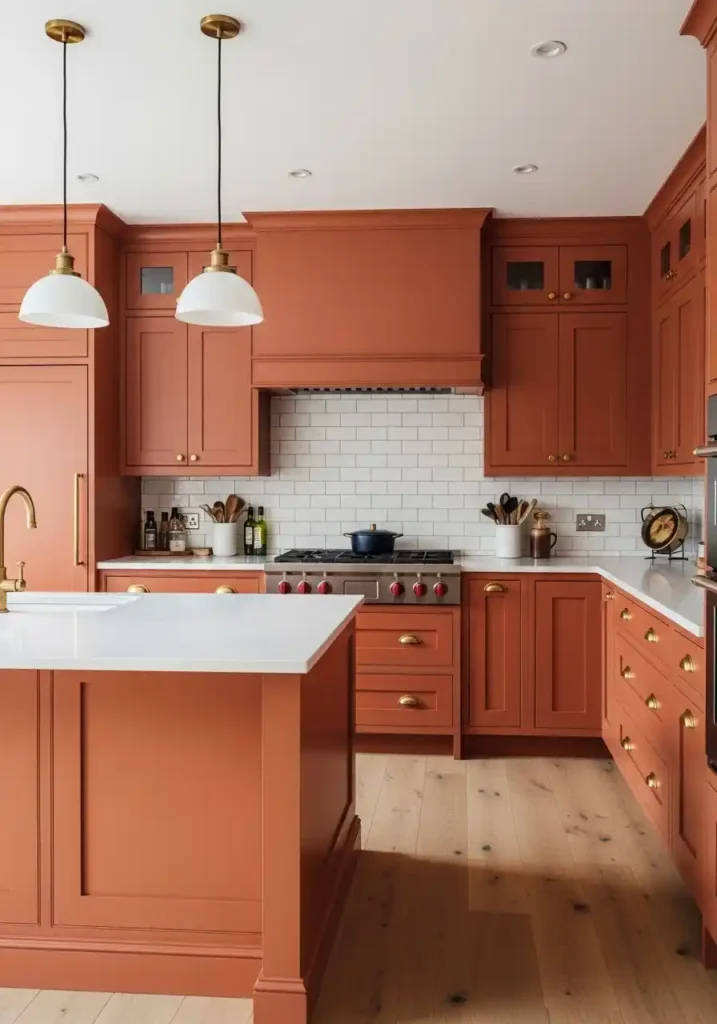 Deep terracotta is the leading saturated cabinet color of the current moment — because it occupies the specific tonal territory of fired clay, Mediterranean architecture, and ancient pigment traditions with a warmth, a cultural depth, and a geological authenticity that no other saturated color can approach simultaneously. Terracotta feels simultaneously contemporary and timeless, bold and organic, designed and completely natural — a color whose deep, warm, slightly complex orange-brown tone creates a kitchen of such concentrated, joyful, genuinely beautiful color energy that every person who enters it feels immediately, physically warmer and immediately, emotionally more alive.