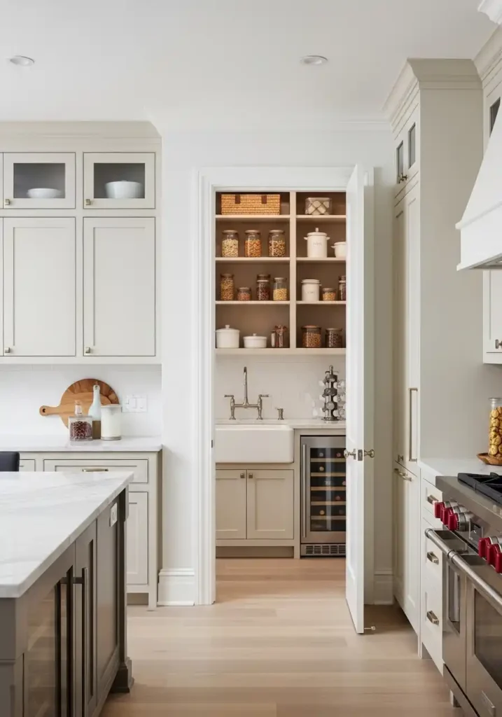 The connected scullery’s most significant contribution to the contemporary kitchen is not its storage capacity or its dishwashing capability but the psychological and practical freedom it gives the main kitchen to be genuinely, permanently, effortlessly beautiful — because when the overflow storage, the cleaning supplies, the recycling, and the catering chaos of daily cooking have their own dedicated, properly equipped space, the main kitchen can be designed for pure, sustained visual beauty rather than compromised between beauty and maximum functional accommodation. The kitchen with a scullery always looks as beautiful as the day it was installed, because the scullery absorbs every practical demand that would otherwise accumulate and degrade the main kitchen’s permanent, magnificent visual quality.