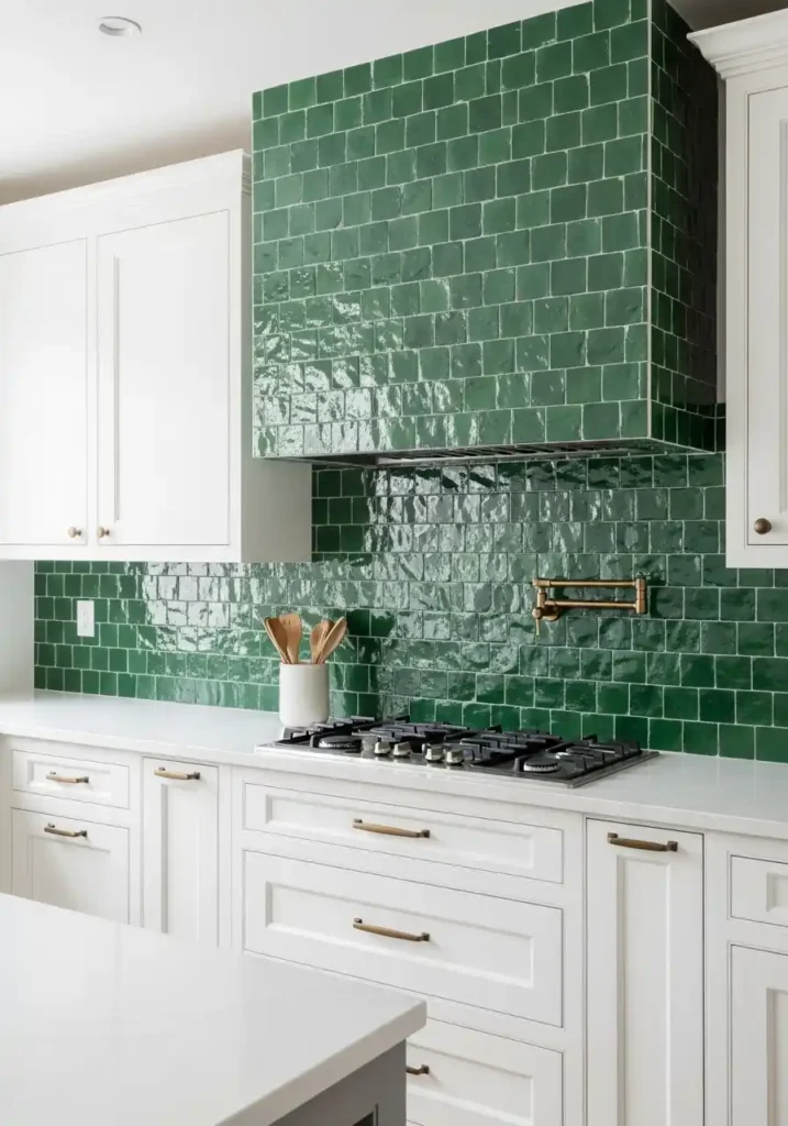Forest green zellige is the current trend’s most spectacular and most in-demand color — because the combination of deep, saturated forest green with the organic surface variation of genuine handmade zellige creates a wall of such rich, jewel-like beauty that it rewards every glance with new variations in color depth and surface quality that machine-made tiles in the same color could never approach. The specific quality of forest green zellige in the morning light — its surface shimmering with alternating deep forest green and slightly lighter emerald highlights — and its completely different, more mysterious, more concentrated character in the evening light creates a kitchen backsplash that is genuinely, continuously different and genuinely, continuously beautiful at every hour of the day.
