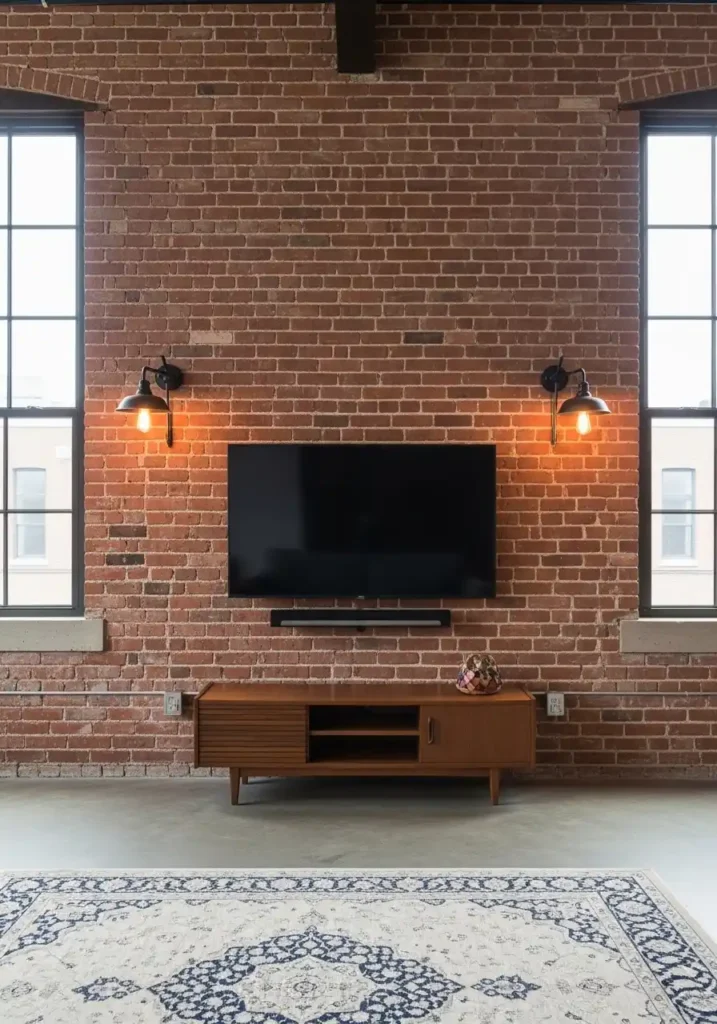 8. The Brick TV Wall: Urban Character and Industrial Warmth