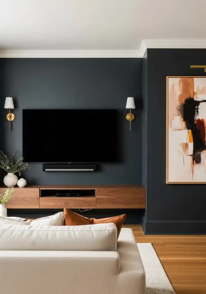 4. The Dark Painted TV Wall: Moody Sophistication That Makes the TV Disappear