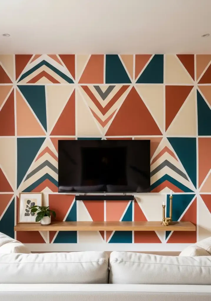 21. The TV Wall With Geometric Pattern Paint: Bold Art Behind the Screen